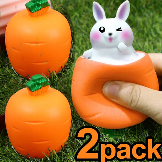 2Pcs Squishy Carrot Rabbit Squeeze Telescopic Toys Kids Children'S Radish Rabbit Cup Pinch Music Toy Creative Stress Relief Gift